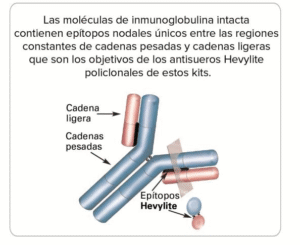 Hevylite® es una prueba en suero de laboratorio rápida, simple y altamente sensible para la medición de proteínas monoclonales de inmunoglobulinas intactas. Identifica y mide individualmente IgGκ, IgGλ, IgAκ, IgAλ, IgMκ e IgMλ. Se evalúan en pares, p. ej. IgGκ/IgGλ, para producir cocientes.